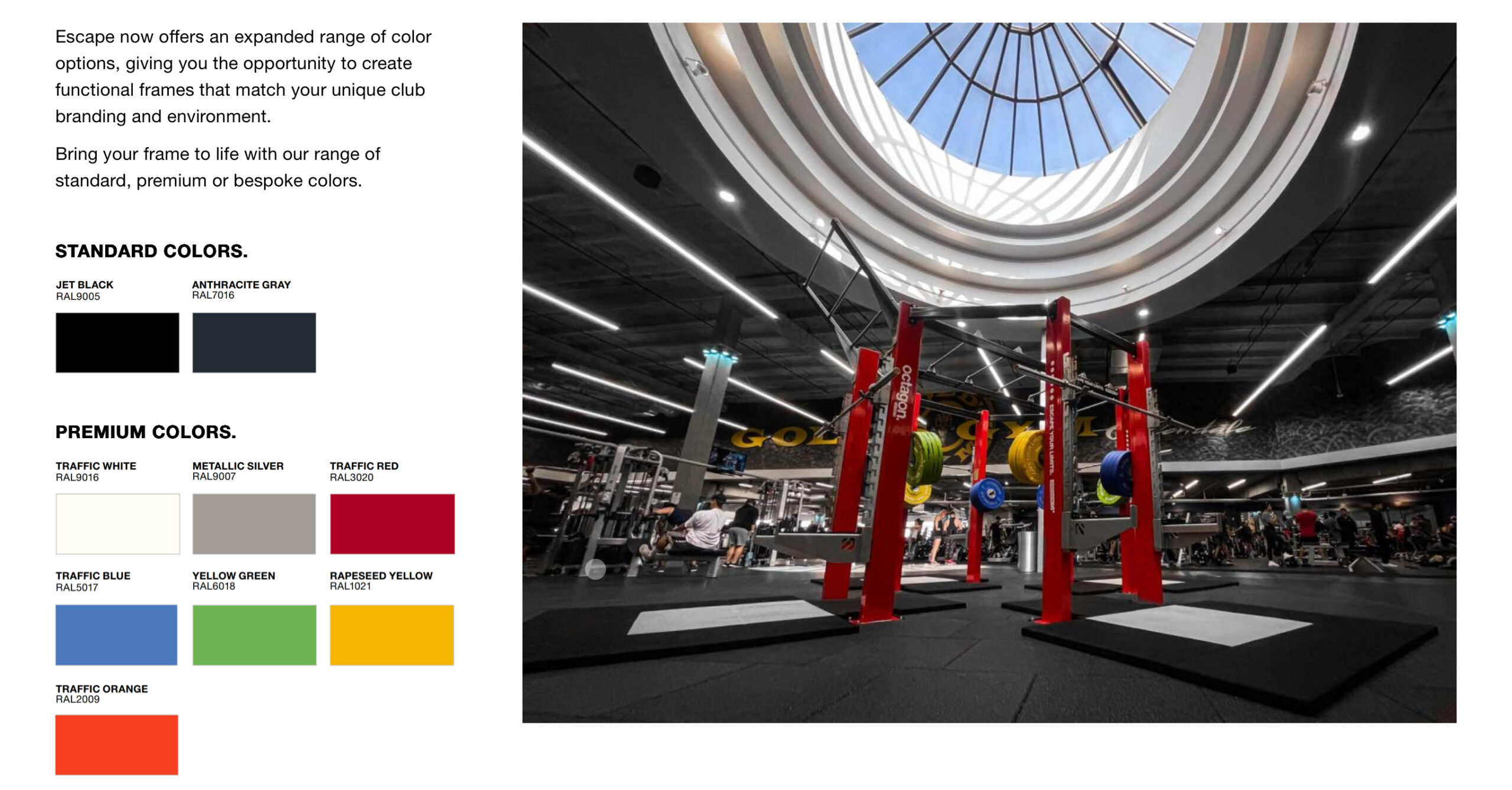 Design-friendly manufacturers, like Escape Fitness, offer frame color choices for ultimate personalization. Photo Credit- Escape Fitness